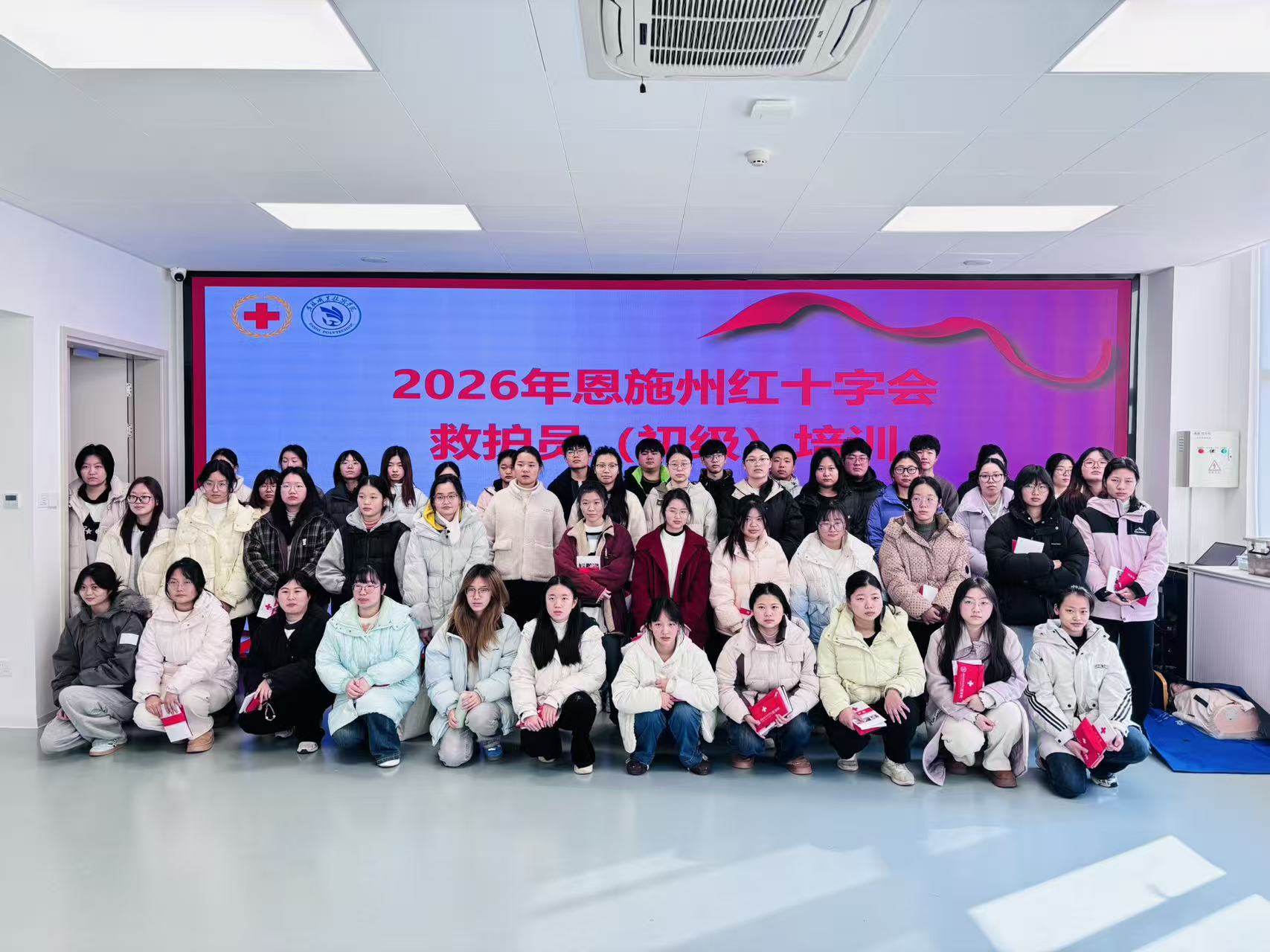 2026 年 1 月 5 日,湖北恩施学院首批红十字救护证培训班顺利收官。本次培训由恩施州红十字会与湖北恩施学院联合打造,特邀州内资深应急救护讲师全程授课,44 名护理专业学子全员通过理论与实操双重考核,成功斩获红十字救护员证书,用专业实力为未来行医之路筑牢急救根基。